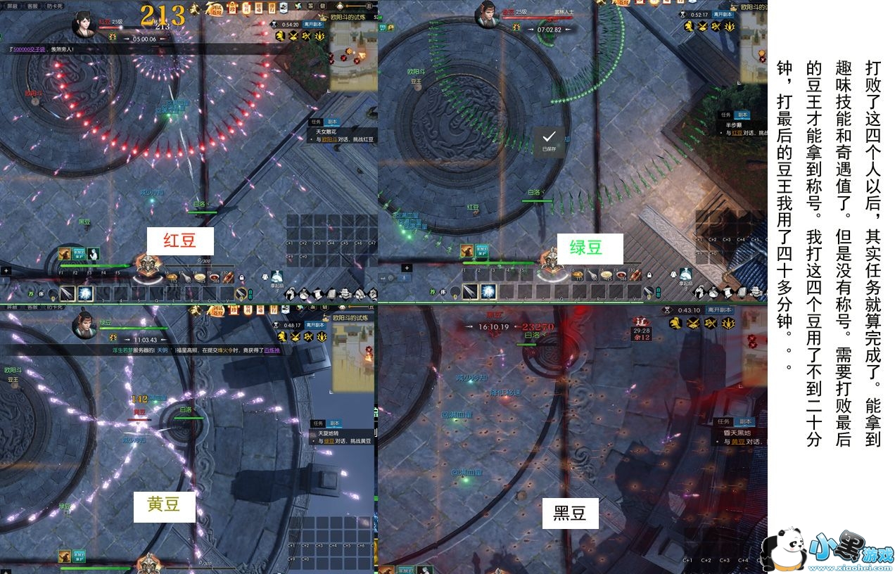 说明:这个任务建议你们有至少一个小时的空余时间什么候再来做。不然很容易就崩溃了。。。不需要吃大五感BUFF,触发其实挺简单的,没有残夜流星这个趣味技能的人你要先去把支线【智者无情】做完。然后至于任务里让打的几个豆。。。说实话我没有太好的办法,只能建议大家要有充足的耐心和顽强的意志去克服困难。。。记得安卓手机刚兴起的时候出了一款游戏,叫是男人就坚持30秒。。。。差不多有点那个意思。。。这个最后豆王就算不成功以后应该也有机会可以重新做。总之祝大家好运。。。