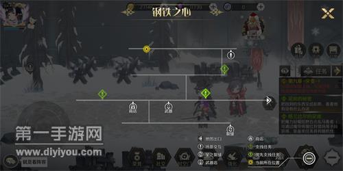 钥匙在钢铁之心的最左上方,在钢铁之心的左上是有一扇门的,这扇门再过去一点就是死胡同了我们的钥匙就在这里,这里我给出大家两张图,一张是大地图,一张是实际的场景图,大家应该能够明确位置了,点击这里的宝箱互动提示就可以直接拿到钥匙了,需要注意的是这里有2个宝箱提示,有一个是地图资源 ,大家两个都点了就好。