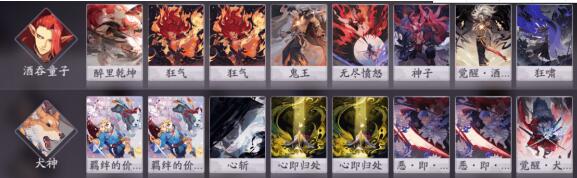 醉里乾坤X1、狂气X2、鬼王X1、无尽愤怒x1、神子X1、狂啸x1、觉醒.酒吞童子X1