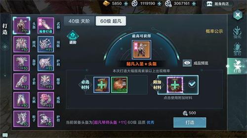 一般来说,在准备好上述材料后即可进行打造,总体过程较为简单,至于能否打造出高阶装备,就看小伙伴的脸是否足够白了。