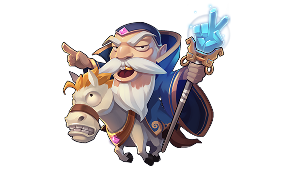 光法的外形是一个白胡子老爷子,手上拿着一个俏皮的剪刀手法杖,骑着一个搞笑的白马,严肃的外表下遮掩不住搞笑的气息。