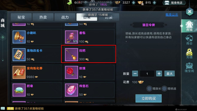 在商城中的日常选项栏中,有一个叫做扫把的道具,看起来并不起眼,但是能够用来解除师徒关系,但是需要绑定元宝购买,300绑元并不贵,如果你没有的话就需要氪金了,但是这么点绑元刷两天地宫就出来了,因此大家都是能够消费的起的。