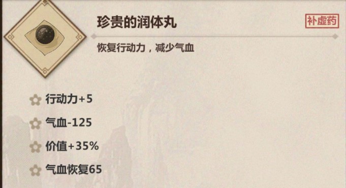 大补的神助药效果是+4行动力和+20外功经验+80气血,在省浪费的角度来看比大量的神助药性价比更高……(总之都高于无前缀的神助药)