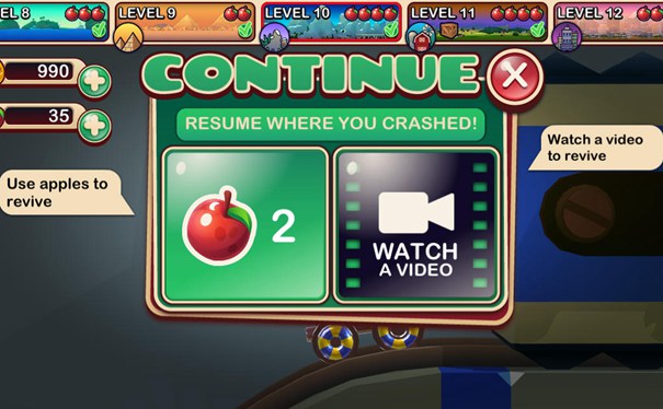 您在奔跑过程中捡到的任何硬币,苹果或物品都属于您自己,以确保您在几秒钟内完成关卡或死亡。同样,死亡后收集的物品也是如此:如果您的角色从购物车中飞出并收集更多的硬币甚至是苹果,则这些物品将被计为捡起的物品。