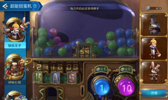 玩家们在超能扭蛋机中必定获得棋手,当玩家们获得了同样的棋手还可以进行升星,最好可以获得三星的棋手哦,而且三星棋手的造型也会有很大的改变,肯定是越来越好看的,玩家们有机会可以多去抽一点哦。