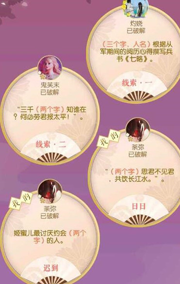 | 线索四 | 姬蜜儿最讨厌约会(两个字)的人。 |