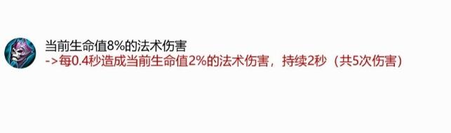 重做的痛苦面具中的75法穿效果直接砍掉了,变成了当前生命8%的法术伤害,痛苦面具的重做削弱了痛苦面具的爆发的伤害,调整为了消耗特征的伤害,当目标的血量越多的时候的输出伤害越强,并且还上调了痛苦面具的法术攻击值,用来解决痛苦面具合成件属性更高的问题。
