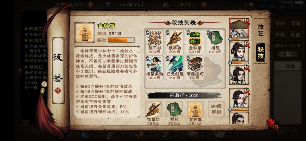 首先音律弹琴可以增加角色的攻击、防御、气血、命中,一共保持三个回合,直接从双王镇就能购买琴和琴谱了,拜佛、烧香玩家们可以去少林寺大雄宝殿(10.17),能够增加角色的攻击力、防御防御4%,在五次战斗中都能用。
