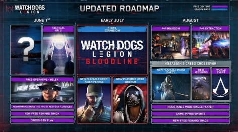 路线图更新之后,育碧决定将入侵模式和萃取PVP模式推迟到8月份。另外育碧还在路线图更新中确认,《看门狗:军团》的“血统”剧情DLC即将推出。5.0更新档将推出新的剧情资料片,艾登·皮尔斯和扳手将加入主线剧情角色名单中。