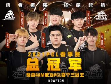 【Krafton Inc.旗下PUBG工作室】信者恒强,扬帆起航!2021年绝地求生冠军联赛(PUBG CHAMPIONS LEAGUE,简称“PCL”)春季赛在为期6周的紧张赛程后落下帷幕。须知少年志凌云,今许人间第一流!4AM战队在季后赛中以30场7鸡的统治级表现荣登冠军宝座,成为PCL首个三冠王!4AM_Forever尽显战神本色,在帮助队伍一举踏足巅峰的同时,以69个总淘汰的超脱之姿登顶春季赛战神榜。
