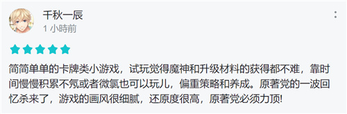 游戏上线后,在TapTap评论栏中,大多数留言有鼓励及赞扬向内容。游戏备受好评的关键点在于还原度,不少玩家感叹游戏完成高的同时,对经典场面的还原也是十分到位,“爷青回”、“童年回来了”这种词语每一页都能见到几个。