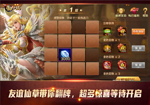 具体的玩法也非常简单,玩家消耗一个“友谊仙草”就可以翻开任意一张牌,并获得其中的奖励,如常见的培养石礼包、体技强化石、高级魂力药剂等等。