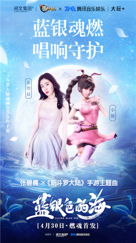 在完备游戏核心玩法的同时,《新斗罗大陆》手游的“软件”配套也没有落下。2020年4月,游戏定制主题曲《蓝银色的海》新鲜出炉,由实力歌手张碧晨演绎,打破了游戏圈与音乐圈的壁障,用更多样地方式诉说斗罗故事。该曲凭借斗罗IP的超高热度和自身的高完成度迅速在QQ音乐、酷狗音乐、酷我音乐等多个音乐榜单中霸榜,仅仅3天,就实现了全网播放量超3亿次的壮举。在随后的全民K歌“翻唱大赛”中,《蓝银色的海》共计被翻唱5万多次,屡次被推上热曲榜,足以证明其火爆程度。