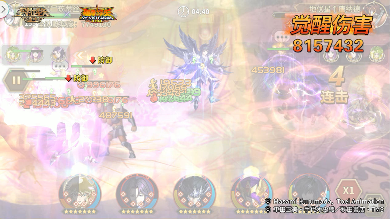 随后,敌方阿赖耶识·沙加释放觉醒技对己方造成了8157432伤害,好在神话·潘多拉在此之前提升了20%的防御属性,扛过了本次觉醒技的攻势。