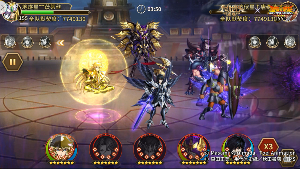 借此契机,神话·潘多拉再度释放必杀技提升了我方全体攻击力并逐步回复我方生命值。
