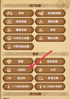 3、然后我们就可以在服务栏中看见兑换码选项。