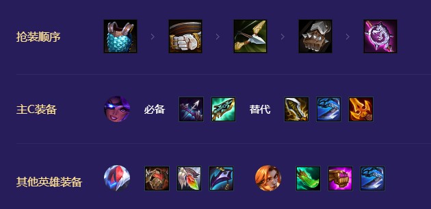 开局抢锁子甲或者腰带做肉装,优先打出高连胜。若全输出装开就抢弓,萨弥拉必备轻语。