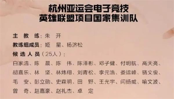 2023亚运会英雄联盟中国队最终名单一览