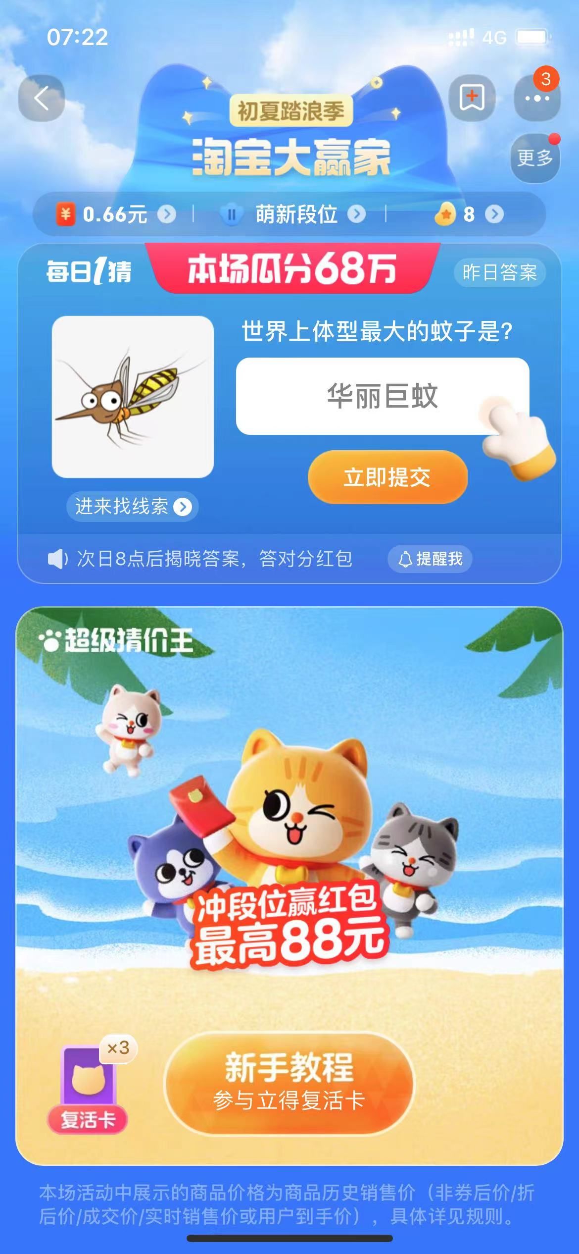 2023淘宝大赢家每日一猜7月14日答案都是什么?其实今天的第一道题是关于蚊子的,问题是谁是世界上最大的蚊子,很多人都不知道是谁,现在我们就来看看,淘宝7月14日每日一猜的答案是什么吧。
