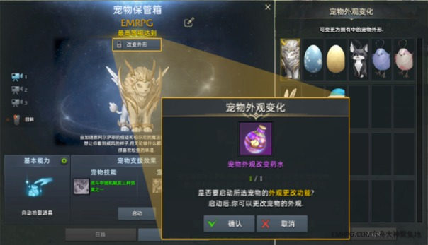 ● 宠物外观更改需要“宠物外观更改药水”项目。