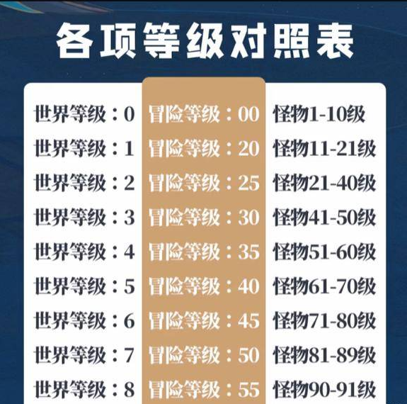 原神世界等级对应的怪物等级表格划分