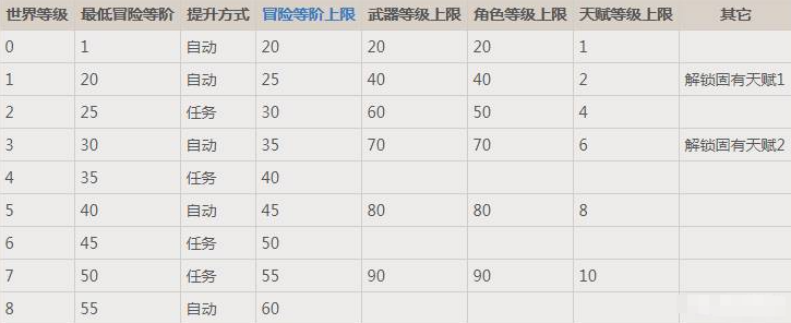 3、世界等级和冒险等级有关,世界等级默认为1级,当冒险等级升到25级之后,就会出现提升世界等级的任务,后续冒险等级每提升5级,世界等级就会 1,不过需要完成特定突破任务才能升级世界等级。世界等级决定怪物的等级、怪物掉落物的品质和秘境掉落物的品质,但是不会影响各种宝箱奖励,因为宝箱奖励内容是固定的,总体来说,世界等级越高玩家能获得的奖励越多,还能体验到更多的玩法。