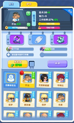 职员的技能可以在图书馆中进行学习,学习次数越多技能等级也会随之升高,技能效果也将越好,为每一个医生护士指定学习路线,可以获得更高效的收益加成。